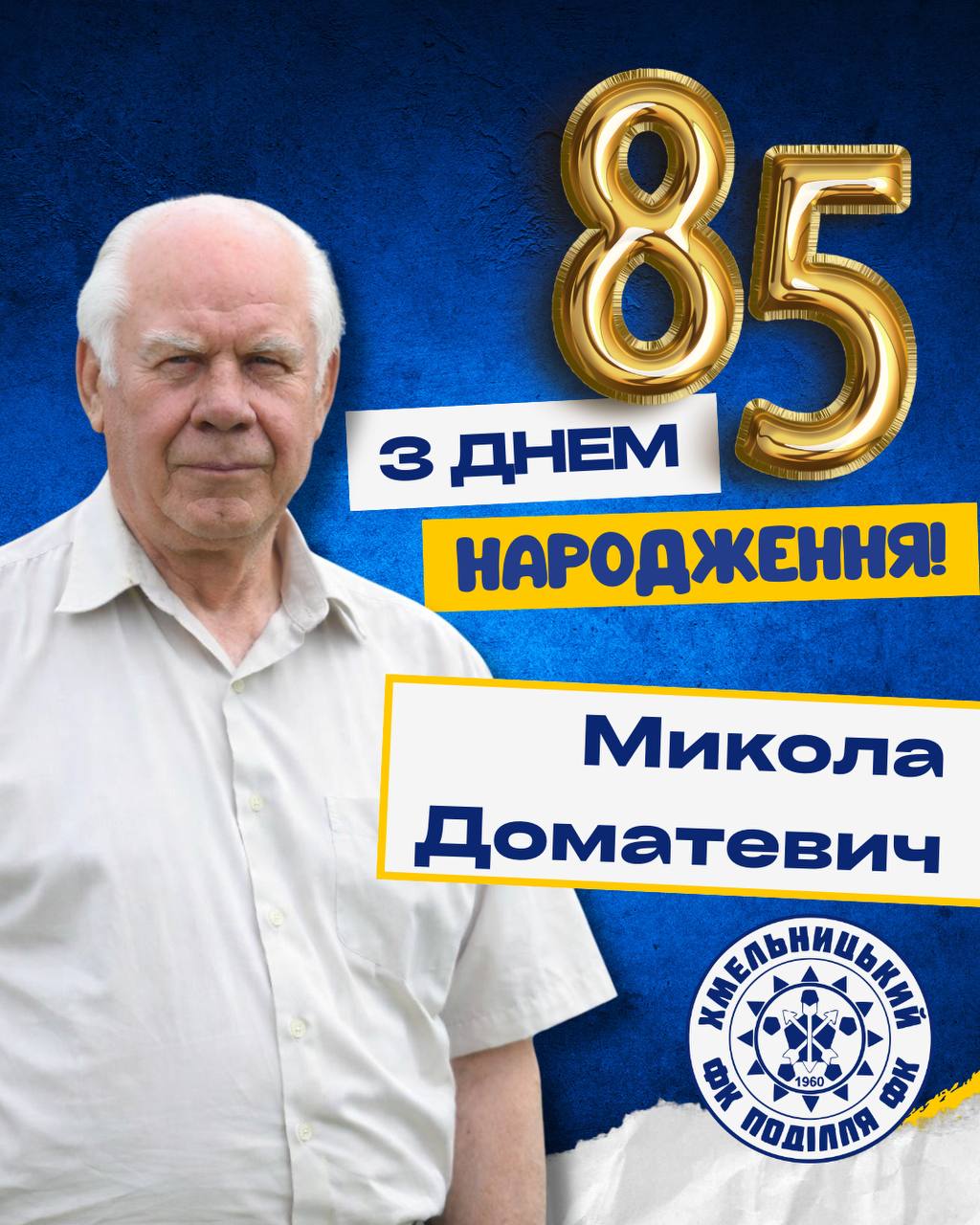 Увесь колектив футбольного клубу «Поділля» щиро вітає Миколу Кириловича з цією визначною датою! Дякуємо Вам за багаторічну працю, відданість спорту та вагомий внесок у розвиток фізичної культури й футболу на Поділлі.