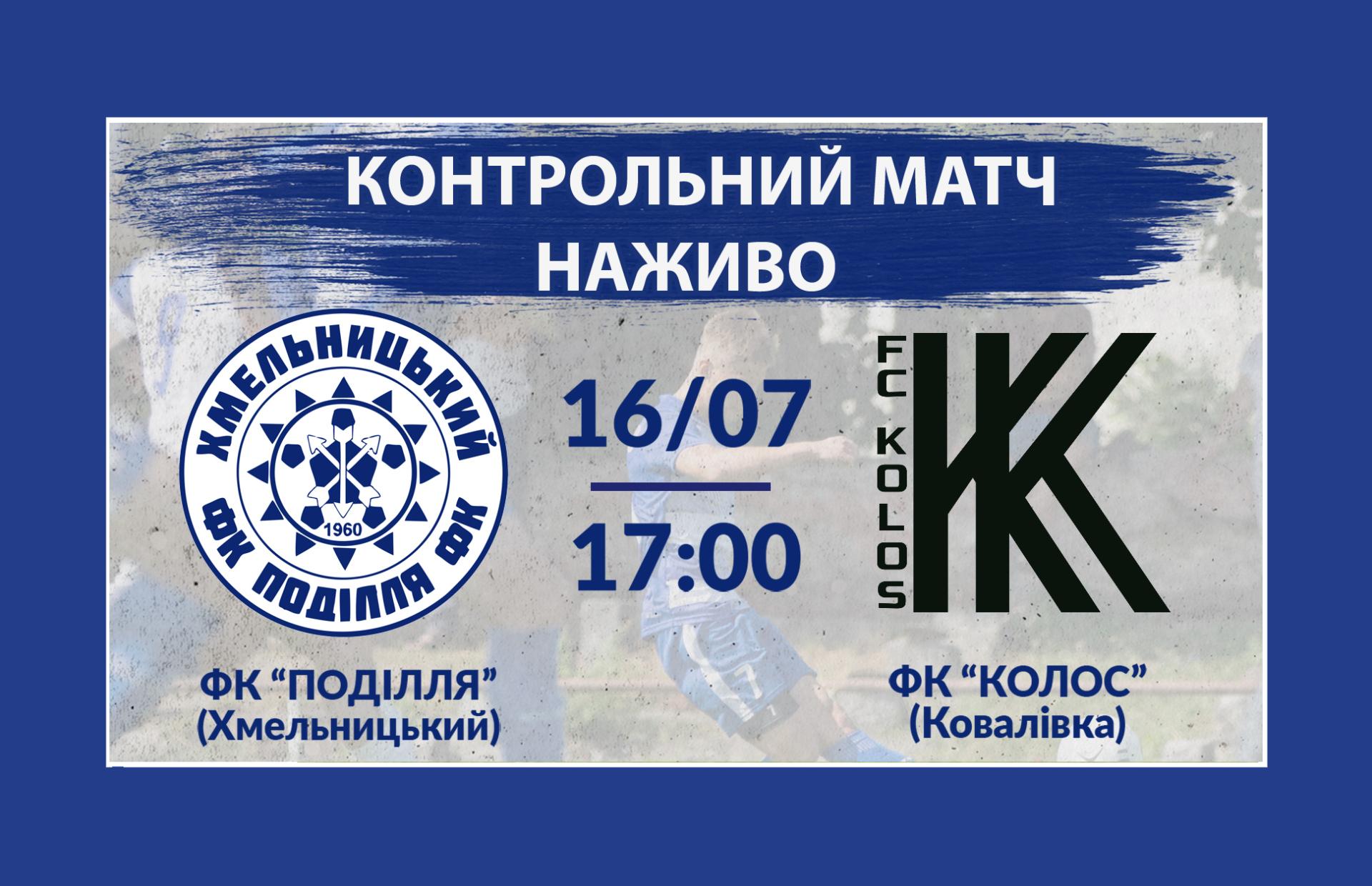Контрольний поєдинок хмельничан з командою Прем’єр-ліги – “Колос” Ковалівка можна буде дивитись 16.07.2021 починаючи з 17:00 в прямому ефірі за посиланням: