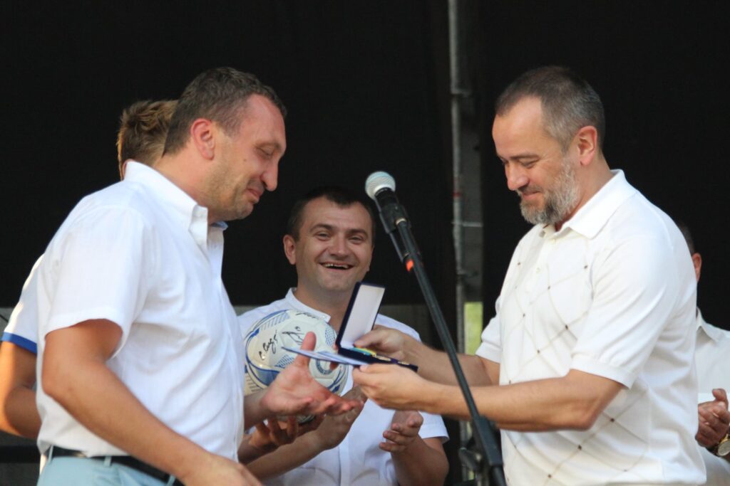 На церемонії святкування було багато різних відзнак, нагород, спортінвентар та просто подарунків. Зокрема для міста Андрій Павелко презентував футболку гравця збірної України з переможного матчу зі Швецією.