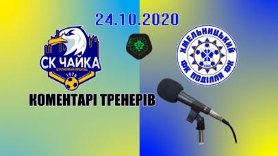 Віталій Костишин (головний тренер ФК "Поділля") та Олександр Щербаков (головний тренер ФК "Чайка"):