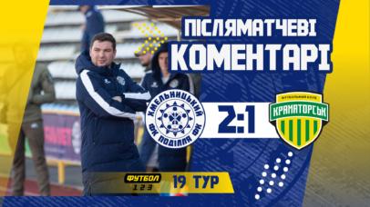 Про гру своїми враженнями поділились Віталій Костишин (головний тренер) та Євгеній Кучеренко (воротар) - зі сторони "Поділля", а також Олександр Мальцев (помічник головного тренера) та Павло Мягков (захисник) - зі сторони ФК "Краматорськ":