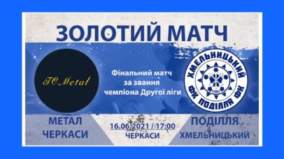 16 червня - Суперфінал Другої ліги Чемпіонату України з футболу 2020/21 "Метал" - "Поділля".