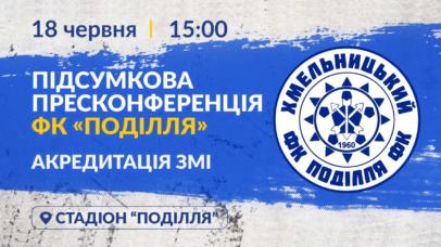 У п'ятницю, 18 червня, о 15:00 у VIP-ложі СК «Поділля» відбудеться підсумкова пресконференція ФК «Поділля» в другій лізі сезону 2020/2021 років.